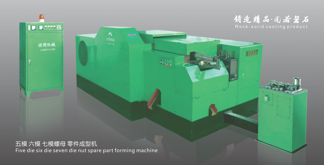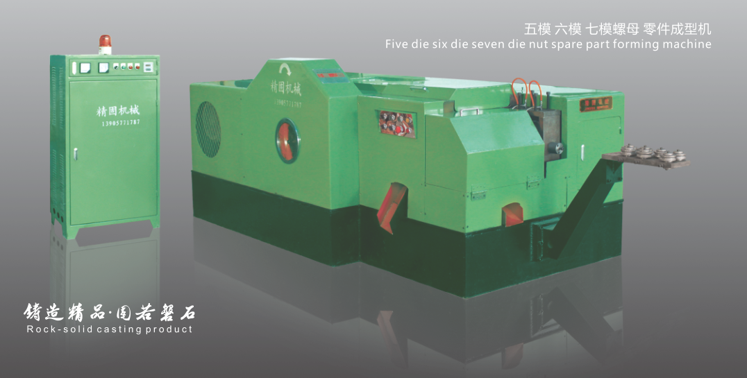 浙江精固机械制造有限公司是专业从事高速螺母冷锻成型机和高速零件冷镦成型机的制造和销售的企业。厂址座落于具有“中国石都 世界青田”美称的浙江青田。公司实力雄厚,积资深的技术人才、管理等资源优势进行有效合理的整合,并辅以现代企业管理模式、科学高效的公司管理体制制度。通过近几年的快速发展,已成为国内大型冷锻成型机生产厂家之一。公司实施先进的人才储备战略,引进了大批具有专业和中高级职称的技术与管理人才,加快了企业的发展进程。依靠雄厚的科技实力和扎实的管理基础,通过ISO001-2000国际标准质量体系认证。精固机械主营产品:专业生产制造五模、六模、七模轴瓦加长式、轴承标准式高速螺母冷锻成型机和高速零件冷镦成型机。具有多工位结构紧凑及刚性高、操作、维护方便等特点。使用本设备能简化生产工艺,提高功效,材料利用率高,精度高,强度好,企业经济效益显著。本设备应用于汽车、摩托车。机械基础行业(如链条、紧固件、轴承。套筒扳手、工具、特殊异形螺母、法兰面螺母、四方螺母、焊接螺母、盖型螺母、锁紧螺母、防松螺母、拉帽螺母、链条螺母、膨胀螺母、自行轴挡、自行车异型件等)等各类异型、复杂非标件的冷挤成型,适用范围广泛。产品中心