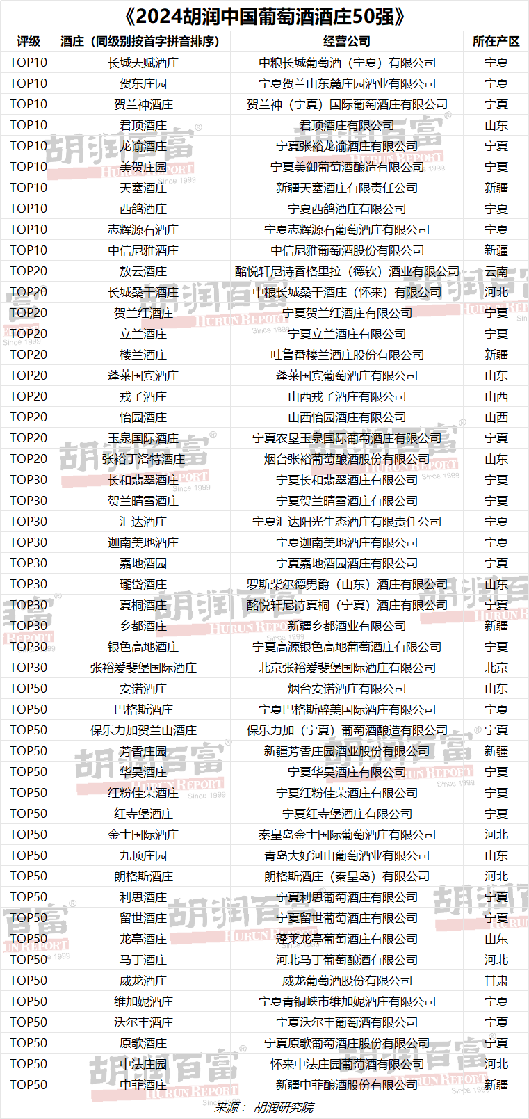 2024胡润中国葡萄酒酒庄50强