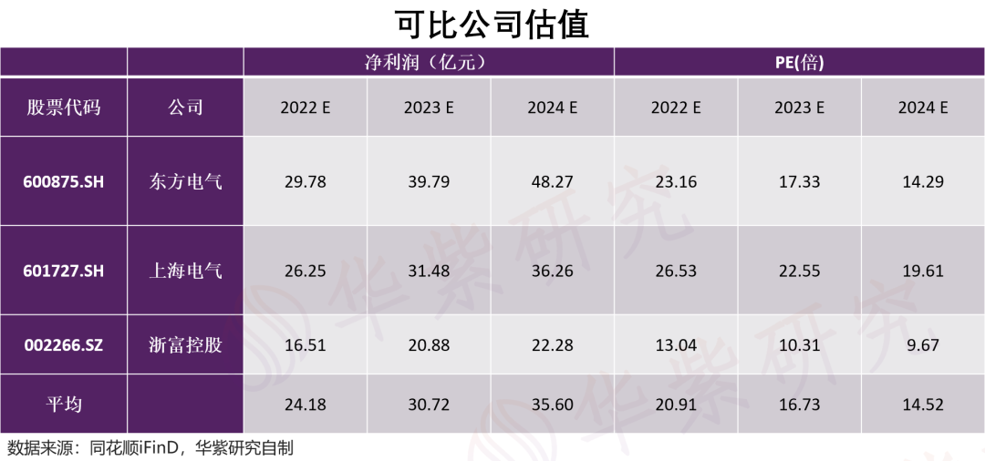(3)电站工程业务&电站辅机及配套设备业务&交直流电机及其他:得益于煤电改造以及抽水蓄能的发展,笔者预计公司电站工程业务2022-2024年增速为20%、25%和25%;电站辅机及配套设备业务增速为15%、10%和12%;交直流电机及其他业务增速为25%、30%和32%