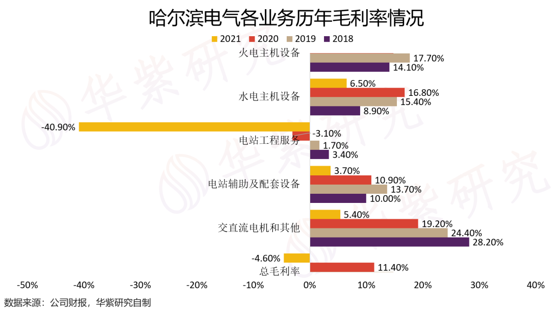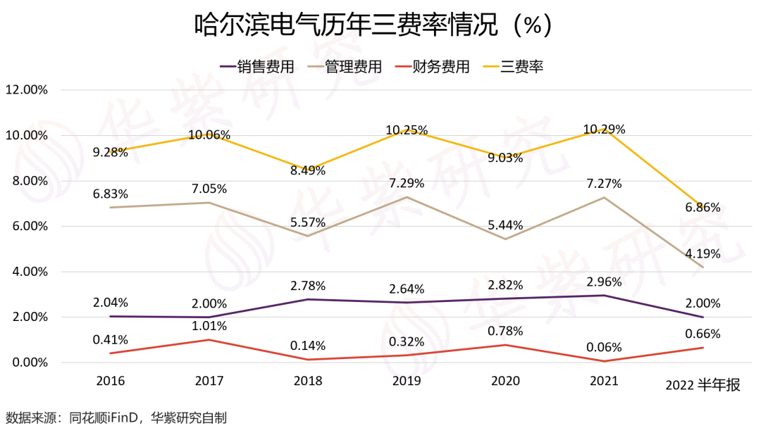 笔者在2022年7月的文章《哈尔滨电气|经营不善还是市场偏见?》中对哈尔滨电气进行了详细分析。受到近些年国内去产能和双碳政策的影响,国内火电新增装机减少,产品价格走低,单位固定成本大幅走高,公司除水电主机设备业务外,毛利率大幅下滑。同时,公司管理费用的逐年攀升进一步削弱了公司的利润厚度,使得公司整体盈利状况不佳。