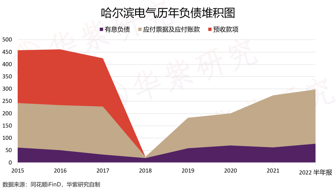 最新财务数据显示,哈尔滨电气应付账款和合同负债分别为150.72亿元人民币和147.07亿元人民币,两者规模相当,总体来看只要公司能正常生产并履约交货,这些负债便不是问题。不过,公司有息负债77.5亿元人民币,应付票据69.84亿元人民币,两者合计147.34亿元人民币,略高于货币资金的146.7亿元人民币。由此来看,当前公司资金流动性确实不足。