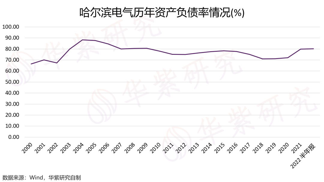 由此,对于哈尔滨电气来说再融资成了当前一个棘手的问题。融资一方面要考虑国有资产流失的问题;另一方面,在当前股价破净的情况下,公众股东参与融资的意愿不高,股权融资面临规模不达预期的情况。同时,哈尔滨电气对于融资的需求很大,过去几年负债率持续维持在高位,2015年至2021年平均负债率高达75.07%。