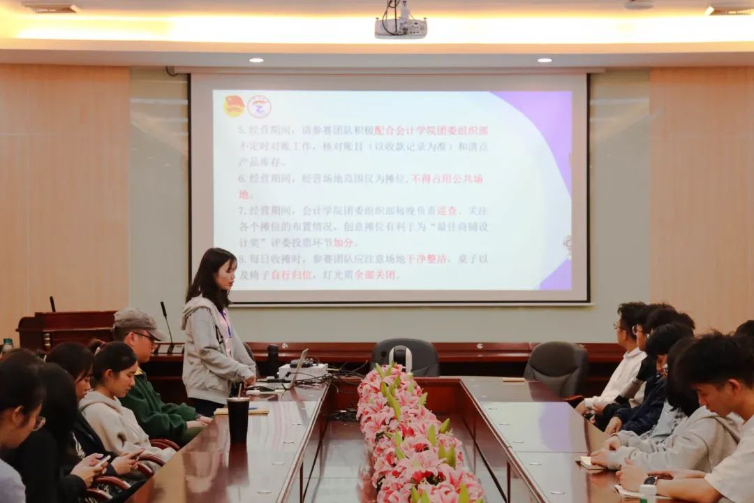 为更好地提高本次入选团队的创新意识和创新精神,有效地开展广州商学院第十一期学生创业街活动,会计学院团委组织部于2021年3月23日12:30在第二行政楼208室召开广州商学院第十一期学生创业街活动商家培训会议。会计学院团委组织部全体成员,入选的37个团队负责人出席了此次会议。会议由团委组织部副部长黄思玲主持。