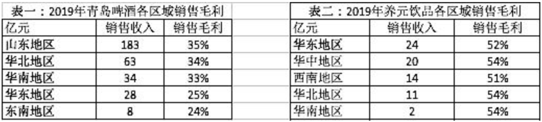 笔者注:与山东地区相比,青岛啤酒在华北和华南地区的收入规模小得多,但毛利率却是相近的。很难以生产端的规模效应对上述毛利率差异进行解释。