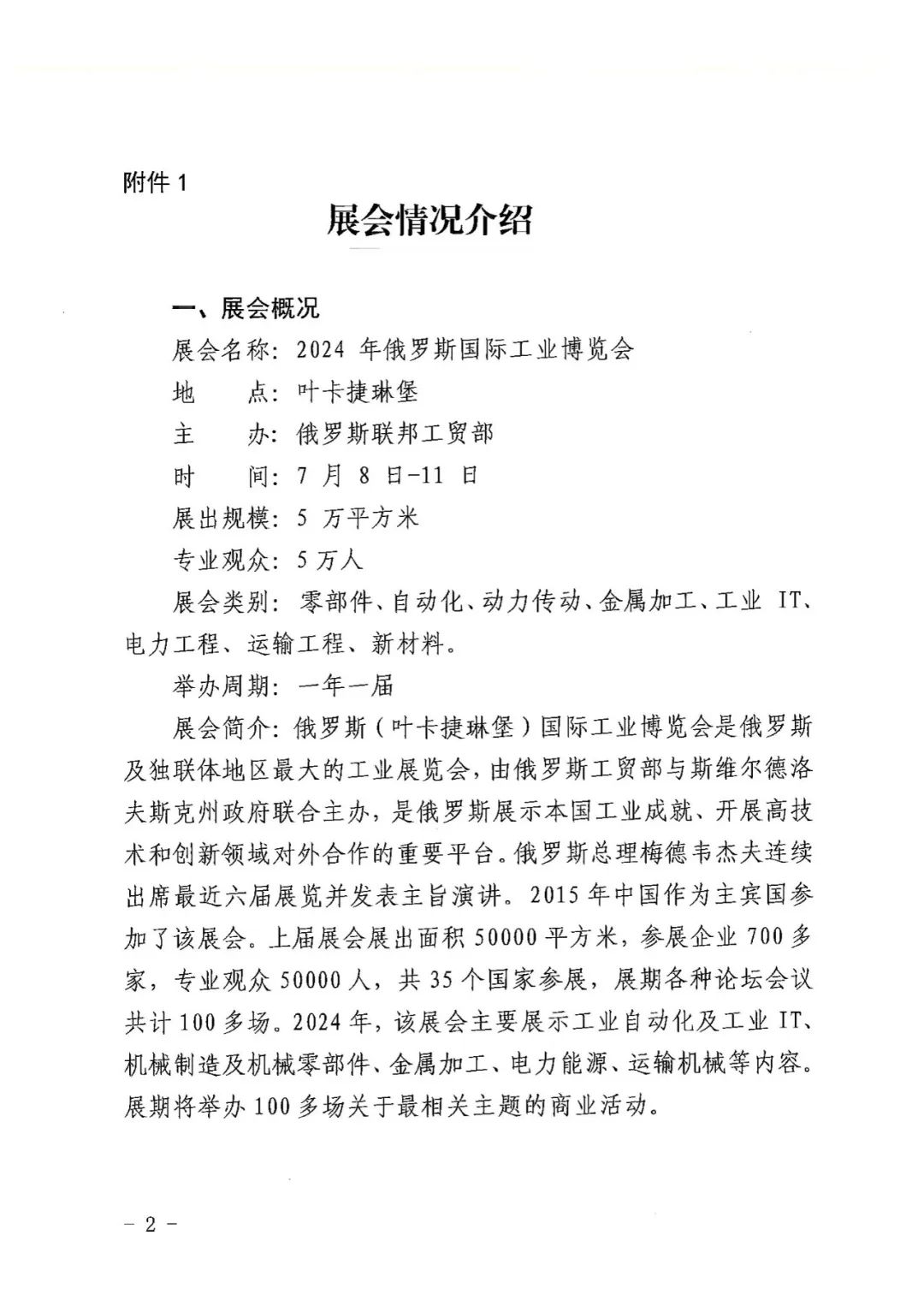 出访预告|2024俄罗斯国际工业博览会邀请函