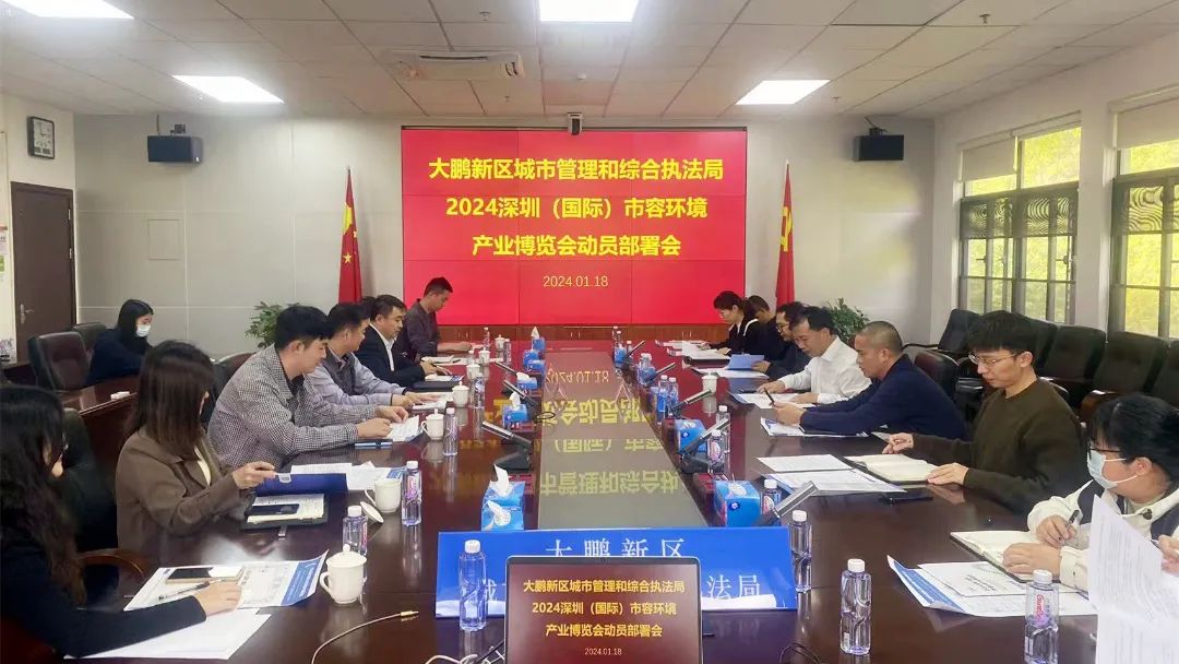 1月18日,2024深圳(国际)市容环境产业博览会动员部署会在大鹏新区城市管理和综合执法局举行,深圳市城市管理和综合执法局运行维护监管处二级调研员钟勇文主持会议。大鹏新区城市管理和综合执法局廖国胜副局长,局综合科、景观园林科、市容环卫科、执法监督科、城市管理综合服务中心市政建设部、城市管理综合服务中心垃圾分类部、城市管理综合服务中心市政管理部等出席会议,正壹会展集团陈琼董事副总裁、蔡娜副总裁等一行参加会议。