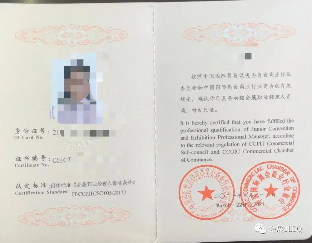 颁发由中国国际贸易促进委员会商业行业分会和中国国际商会商业行业分会联合 用印的《会展职业经理人》专业证书。该证书在全国范围内有效,表明持证人具备从事相关职业活动的专业知识和职业能力,是用人单位录用、晋升和评定职称的重要参考。