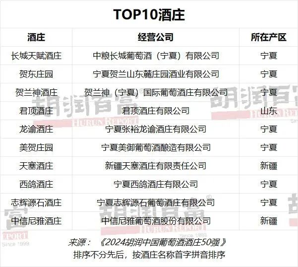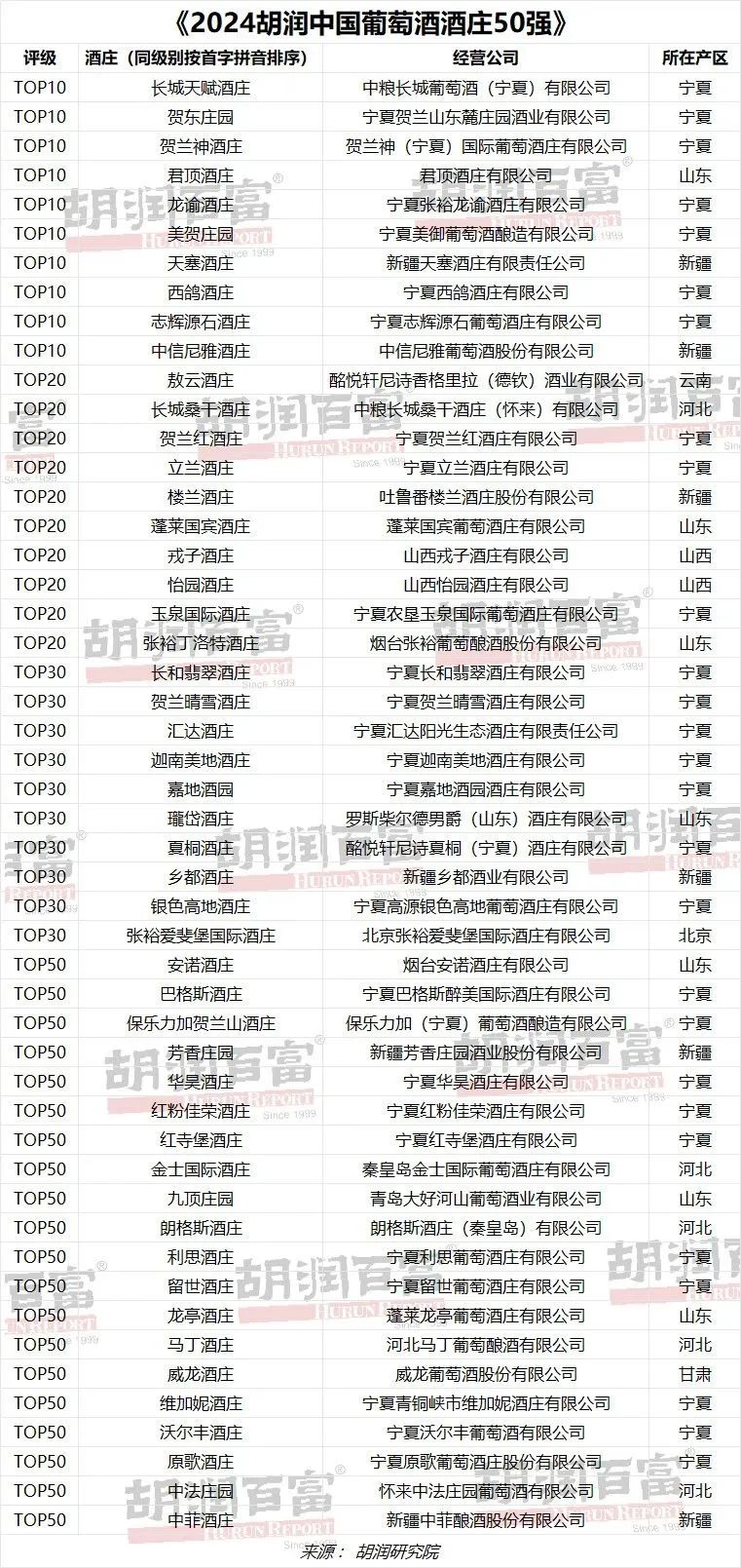1月19日,胡润百富首次发布“2024胡润中国葡萄酒酒庄50强”榜单,公布中国葡萄酒行业实力最强的50家酒庄。