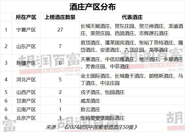 宁夏产区以27家酒庄上榜的数量优势领跑。