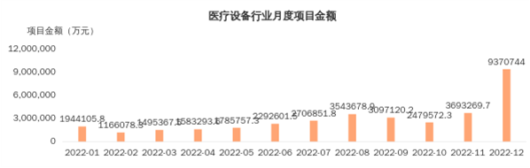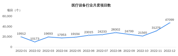 1.2022年1-12月全国医疗设备行业招标采购项目数量呈上升趋势,项目规模同比增长13.7%,大额项目亦有明显增加。