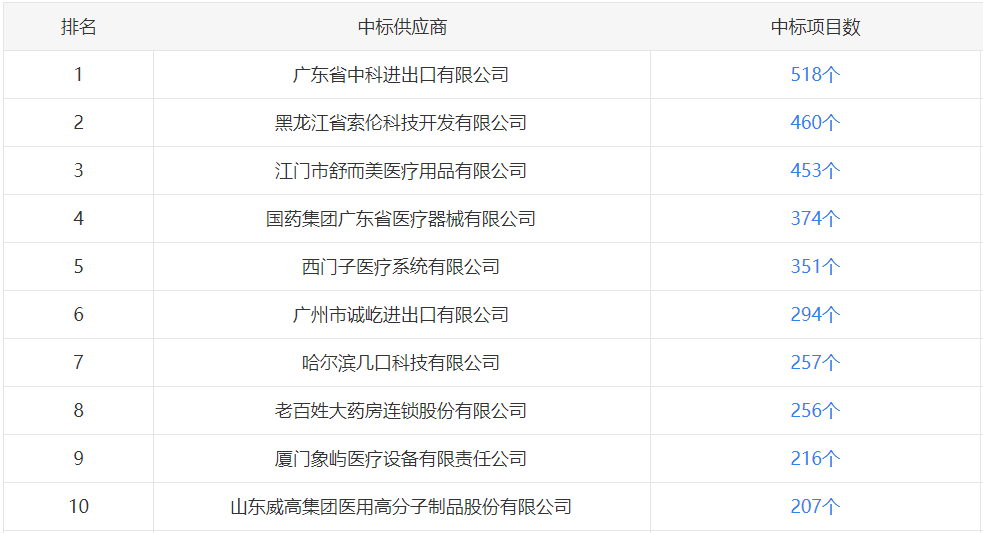 # 中标供应商