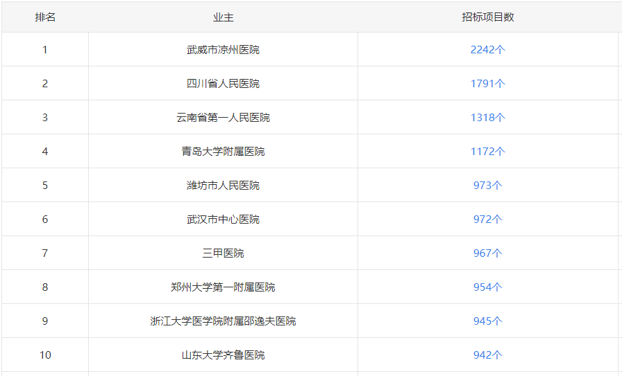 3.区域招标采购量差异明显,新疆、湖北、山东等地区采购项目增长较快,可持续关注。