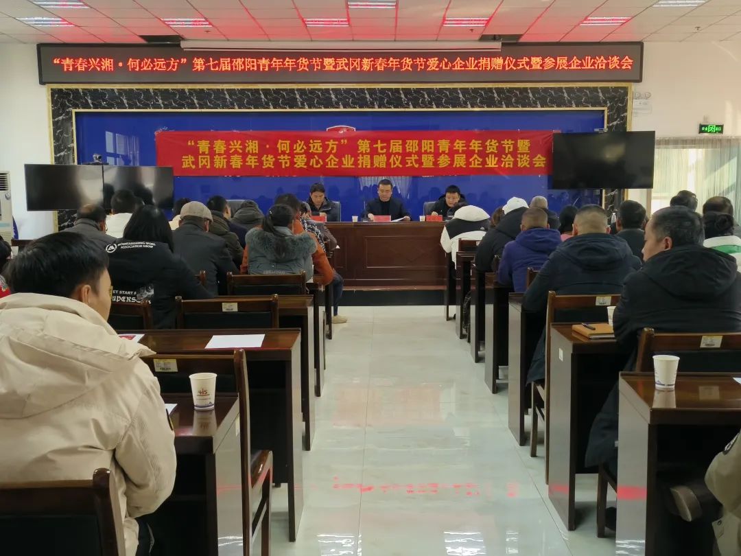 1月23日,“青春兴湘·何必远方”第七届邵阳青年年货节暨武冈新春年货节参展企业洽谈会在武冈市召开。市人民政府副市长廖丹出席会议,市委办、市政府办、市委宣传部等市直有关单位负责人、爱心企业及参展企业负责人、助农主播、团市委工作人员及“红小帽”志愿者等100余人参加会议。会议由市委办副主任沈程永主持。