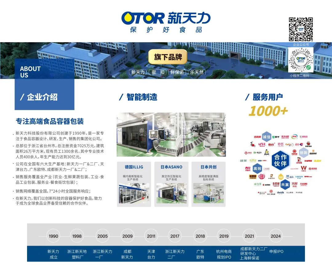 作为一家专注于食品容器设计、研发、生产、销售的集团化公司,新天力始终致力于以创新科技的容器保护好食品,为人类健康和美好生活奋斗不息。