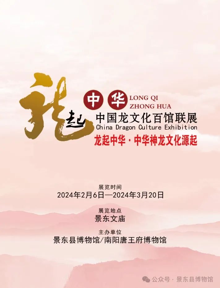 为迎接农历甲辰龙年的到来,增添节日喜庆氛围,2024年2月6日“龙起中华-中国龙文化百馆联展”将在景东文庙展出。本次展览由景东县博物馆、南阳唐王府博物馆联合全国各地文博机构共同举办。