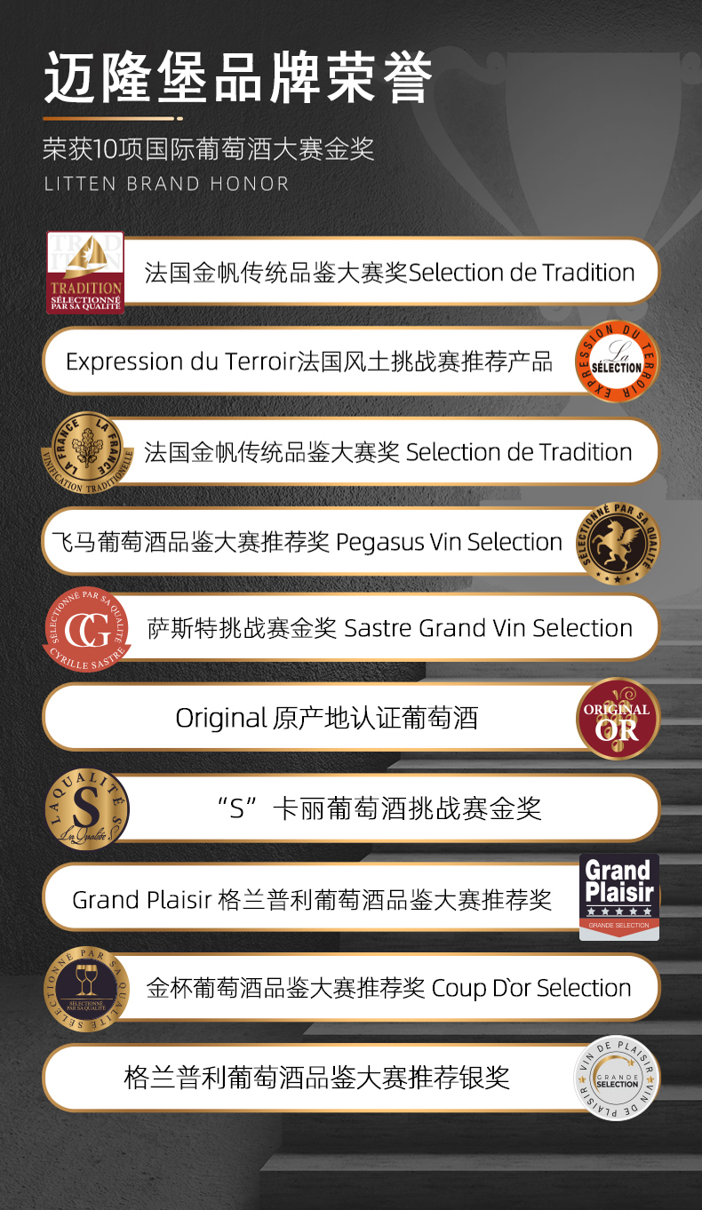 凭借着良好的品质和口感,迈隆堡酒庄自成为皇室酒庄以来屡获国际大奖