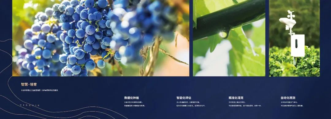 在田间管理上,长城天赋酒庄构建起酿酒葡萄种植技术体系,推动信息化,智慧化葡园建设。酒庄的智慧葡园数据中心包含监控葡萄物候期、葡萄品种、品种成熟度、土壤水分状态和灌溉指数、气象数据和无人机航拍等6个模块,能够收集并进行关键指标计算,然后传送到葡萄园数字管理系统。国家葡萄产业技术体系首席科学家段长青教授为长城天赋酒庄指导葡萄种植,同时,酒庄还与中国农业大学就“天赋酒庄高标准葡园及优质特色葡萄酒生产关键技术体系研究”达成合作。