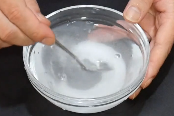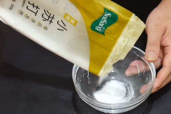 首先我们准备一个容器,在容器中倒入适量的小苏打,然后再倒入一些白酒,这里随便用什么白酒都可以,加适量的清水将它们稀释一下。