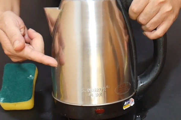 我们可以把溶液喷洒在不锈钢水壶表面,用百洁布擦拭几下,水壶上面的水渍和污垢很轻松就擦拭干净了,擦完立马光亮如新了。