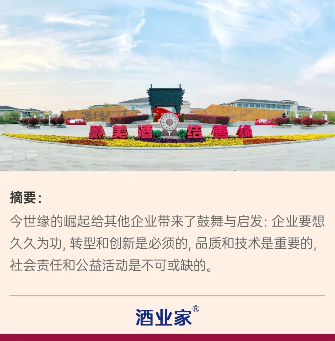 却顾所来径,苍苍横翠微。今世缘的崛起给其他企业带来了鼓舞与启发:企业要想久久为功,转型和创新是必须的,品质和技术是重要的,社会责任和公益活动是不可或缺的。