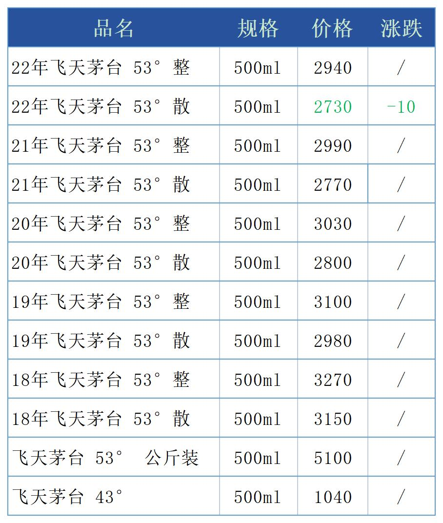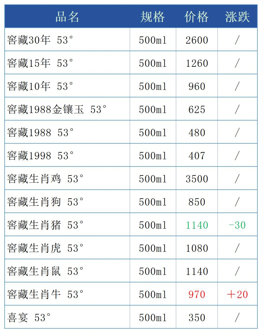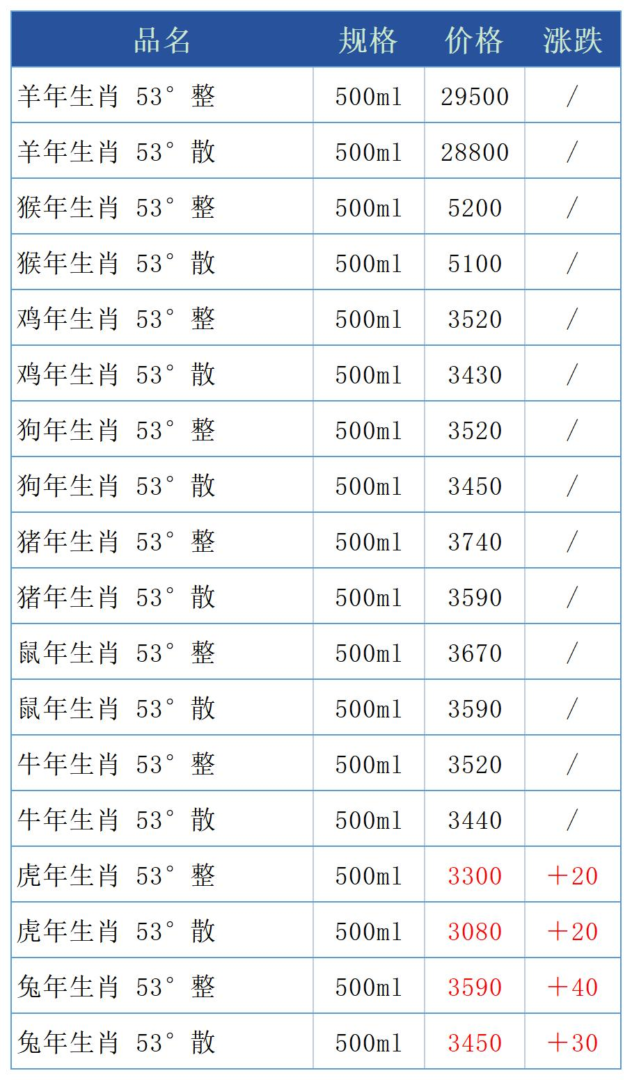 生肖茅台上涨,每日名酒报价2023年1月12日