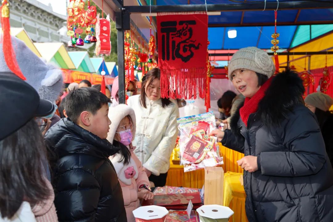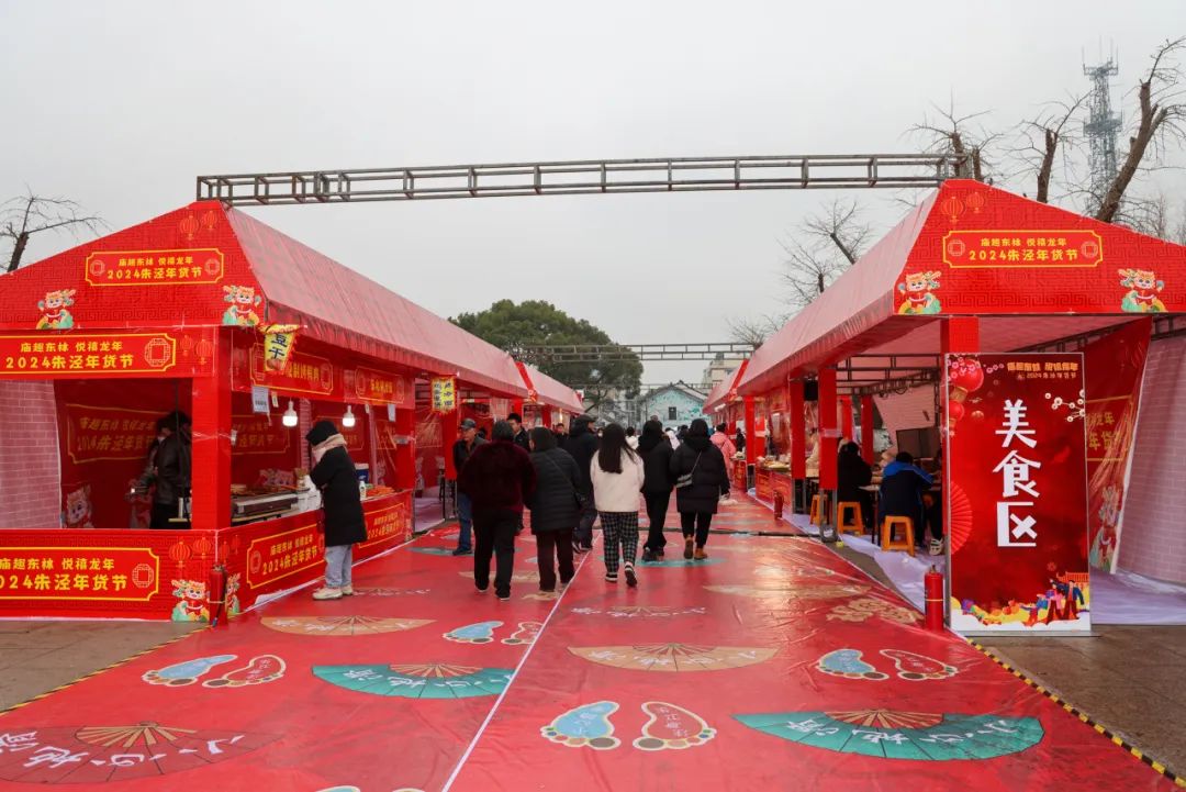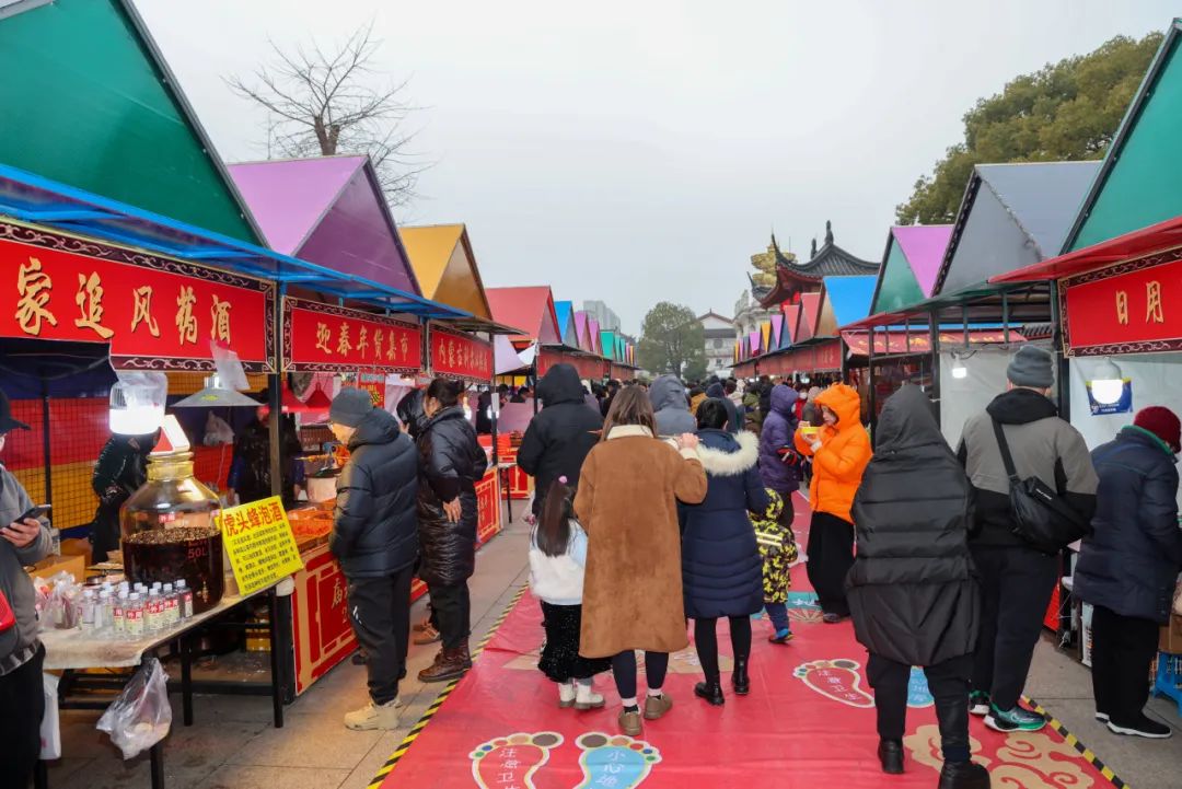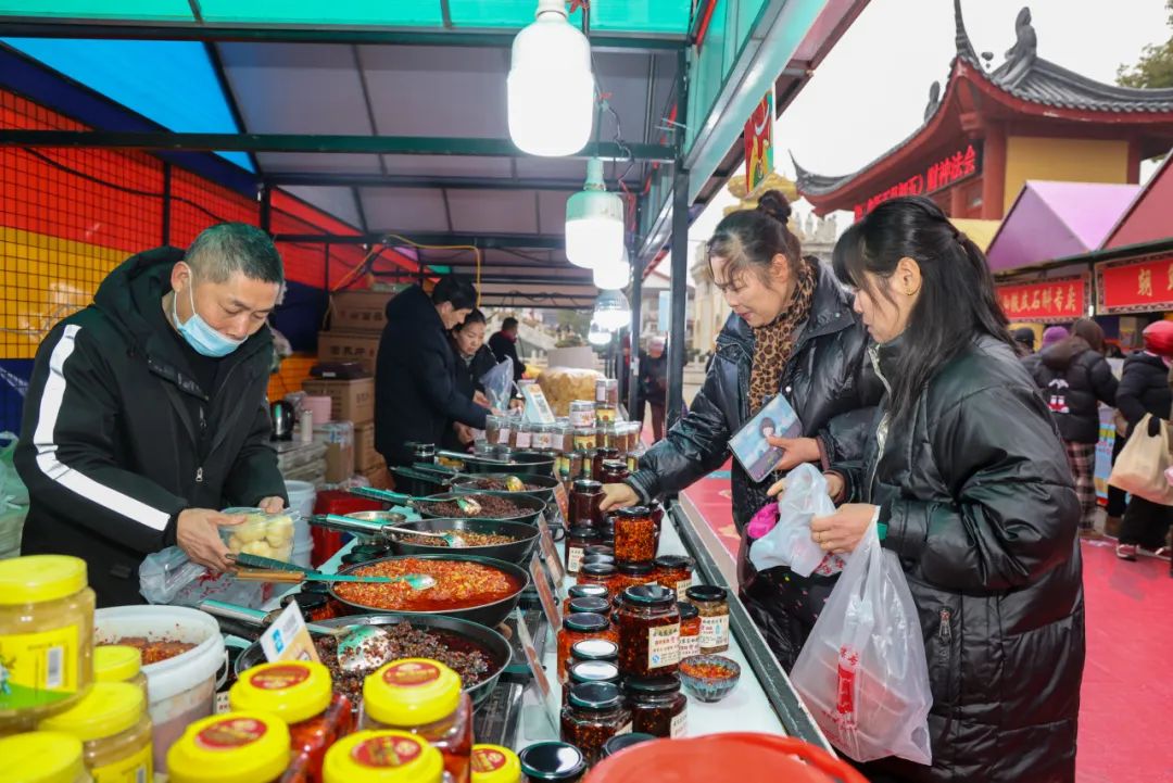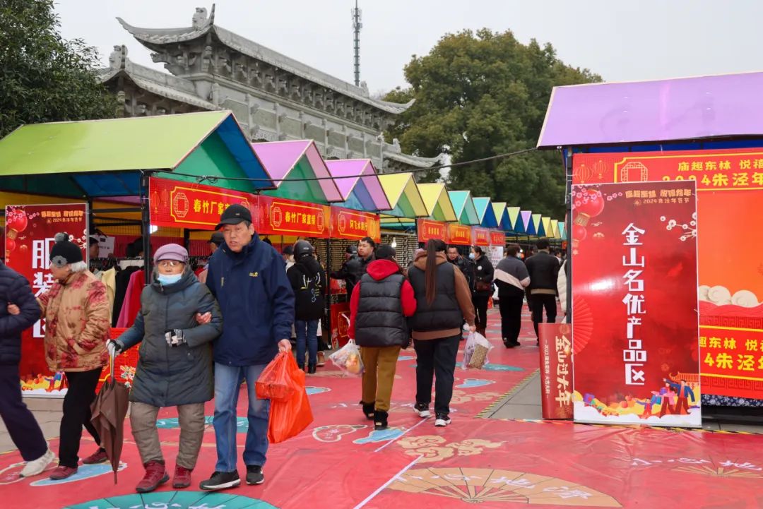 置办年货是中国人迎接新年的重要仪式之一,随着新春的脚步越来越近,年货采购也被越来越多人提上日程。近日,朱泾镇东林寺广场上正在举办“庙趣东林 悦禧龙年”——2024朱泾年货节,将持续到1月28日,现场浓浓的“年味”吸引了众多市民和游客前来采购。