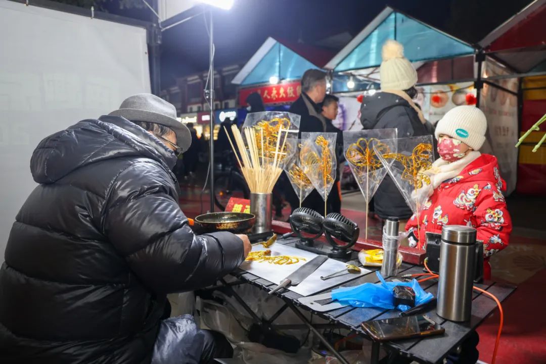 现场,热气腾腾的焋糕、栩栩如生的糖画、高高挂起的红灯笼、美味的南北美食、本地特色产品云集一堂,为市民奉上了一场热闹的年货节,吸引了不少市民游客驻足品尝购买。与此同时,现场还能体验非遗文化和传统民俗的魅力,以及套圈、打气球等经典互动小游戏。不少市民表示,这不仅勾起了他们儿时的记忆,也让他们感受到了久违的“年味”。