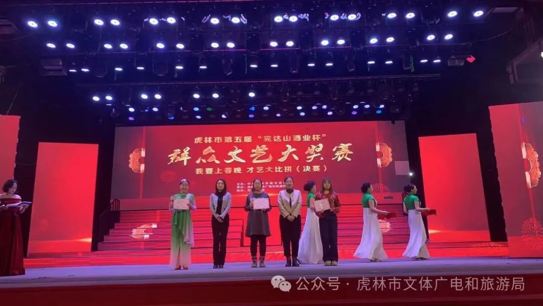 1月23日,由虎林市委宣传部主办,市文体广电和旅游局承办的虎林市第五届“完达山酒业杯”群众文艺大奖赛决赛在文化馆举行,历时40天“我要上春晚·才艺大比拼”群众文艺大奖赛圆满落幕。虎林市委常委、宣传部长岳庆萍,宣传部副部长赵佳,市文体广电和旅游局党组书记、局长刘淑英,副局长温明洁,完达山酒业总经理霍祝如出席比赛,并为获奖选手颁奖。 在这次大赛中,来自虎林市各乡镇、中心街道、企事业单位、机关的选手们纷纷展示了他们的才艺,包括舞蹈、歌唱、小品、器乐演奏等。这些表演不仅展示了选手们的才华,也体现了虎林市人民的文化自信和积极向上的精神风貌。大赛的评委们对选手们的表演给予了高度评价,认为他们表现出了很高的专业水平。同时,观众们也纷纷为选手们的精彩表演喝彩,现场气氛十分热烈。 本次群众文艺大奖赛,是全市规模大、规格高、覆盖面广、参演人数众多的基层群众文艺活动。本次大奖赛分为初赛、复赛和决赛,自2023年12月16日拉开帷幕,40天时间里,来自全市11个乡镇,中心街道,文化馆选出的500多个基层群众文艺节目、2000多名演出人员,为虎林市民带来了99场比赛专场演出。本次大赛自启动以来,就受到了广大市民的热烈欢迎和积极参与。作为大赛赞助商的完达山酒业,对此次活动给予了大力支持。