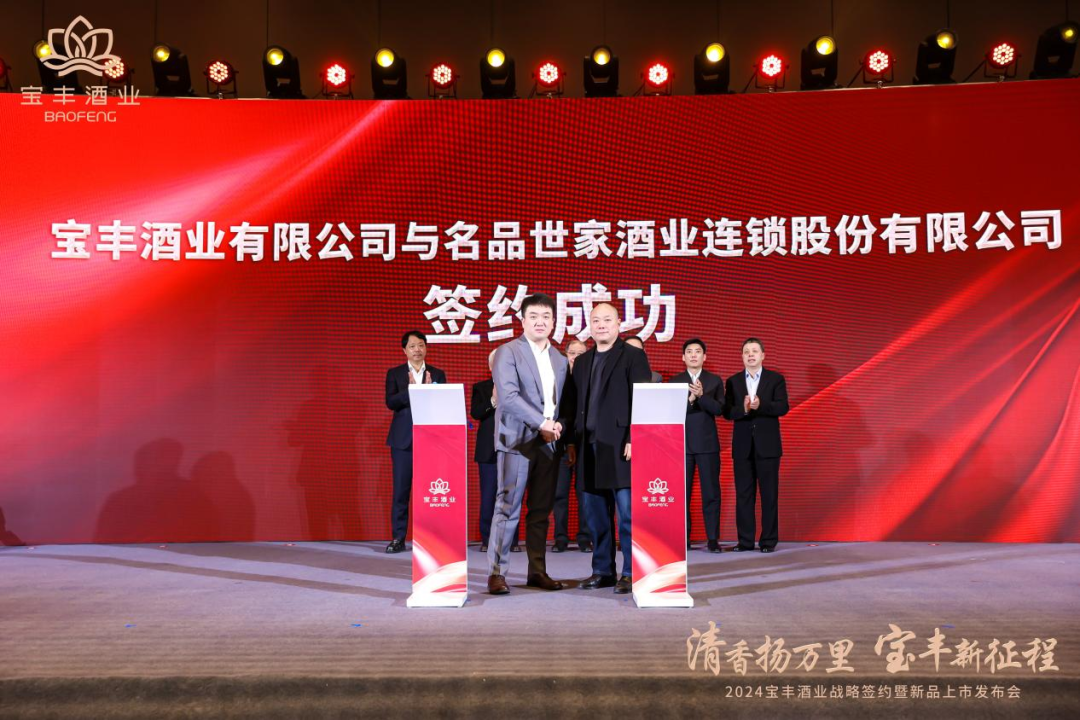 1月16日,宝丰酒业传出2024年第一个签约喜讯,战略签约商源集团、名品世家两家全国头部大商。这次签约仪式以“清香扬万里 宝丰新征程”为主题,将香型发展的意义前置,也是宝丰酒业将自身发展放置于品类发展潮流中的大局观的展现。