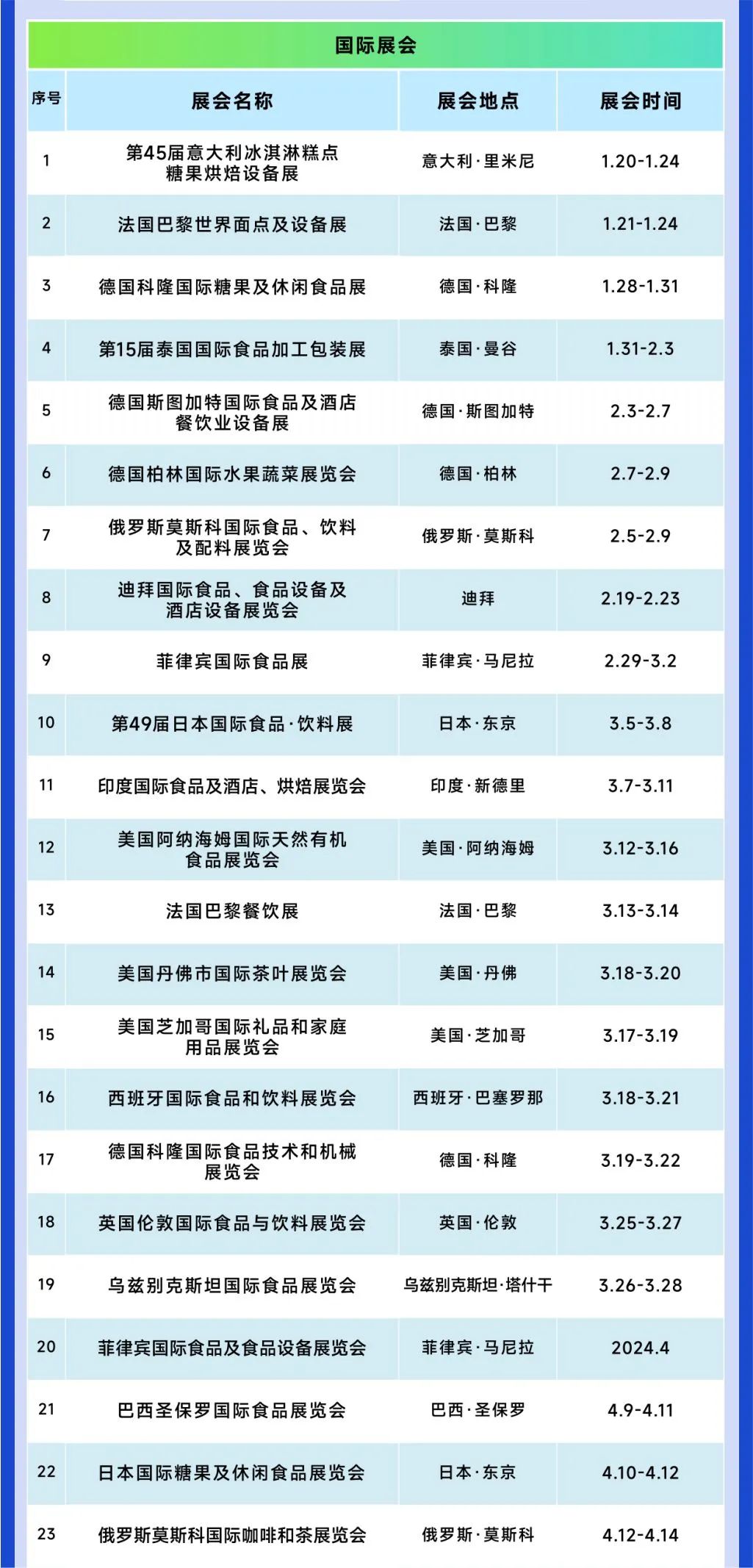 2024年全球餐饮展会有哪些?