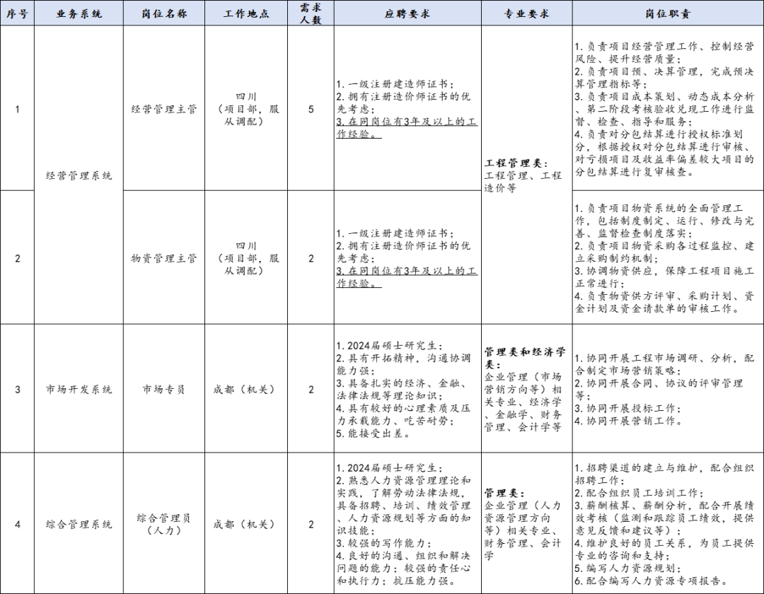 7、工作地点:四川、云南。
