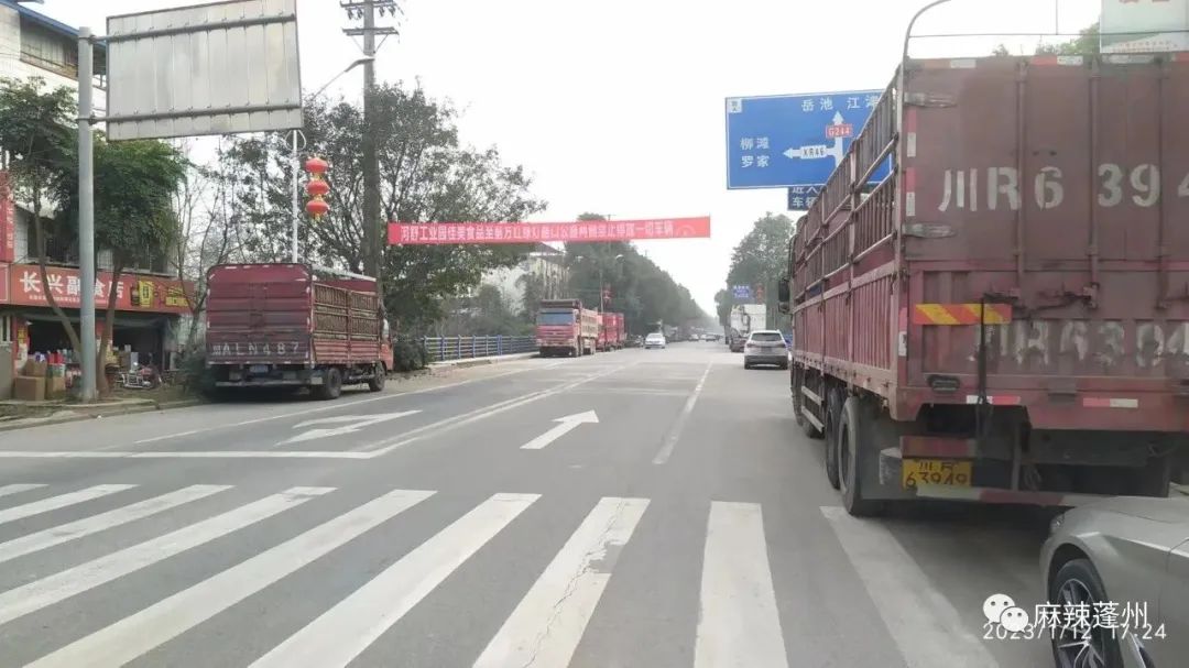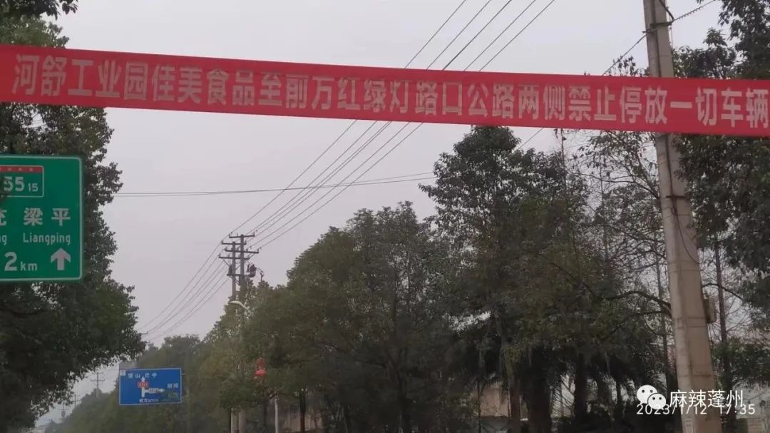 蓬安河舒工业园区佳美食品公司外面桂花北路600多米停满了长长的大货车,几乎是外地外省牌照,都是拉广柑的外地外省拖挂车。此路段留下交通安全隐患,公路两边的非机动车道完全停满了车。交警也在此路段两头挂了横幅"河舒工业园佳美食品至前方红绿灯路口公路两侧禁止停放一切车辆” 现场看到的公路上面是横幅,下面是密密麻麻停放的车辆,连公交车都无法停靠站台上下乘客。此处公交站台搭乘的多为老人和读书上学放学的小孩,加上此路段为国道G244的一部分,过往车辆也很多,为此这路段交通极为不安全。希望尽快得到处理。