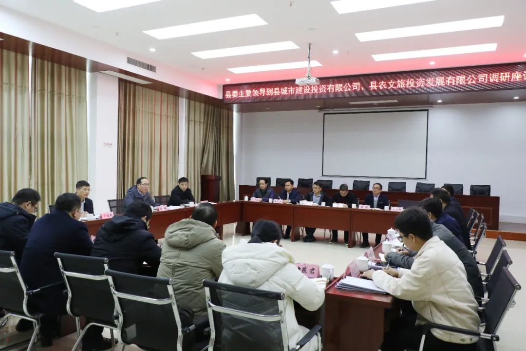 当天上午,苏干秋先后来到县城投公司、县农文旅投公司,了解企业运营等情况,并召开座谈会,听取相关工作汇报。苏干秋充分肯定两家企业近年来为推动县域经济高质量发展作出的成绩,和企业负责人就企业当前发展中存在的困难与问题开展讨论研究,就下一步发展目标提出要求。