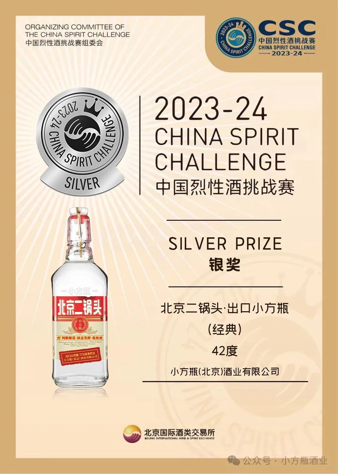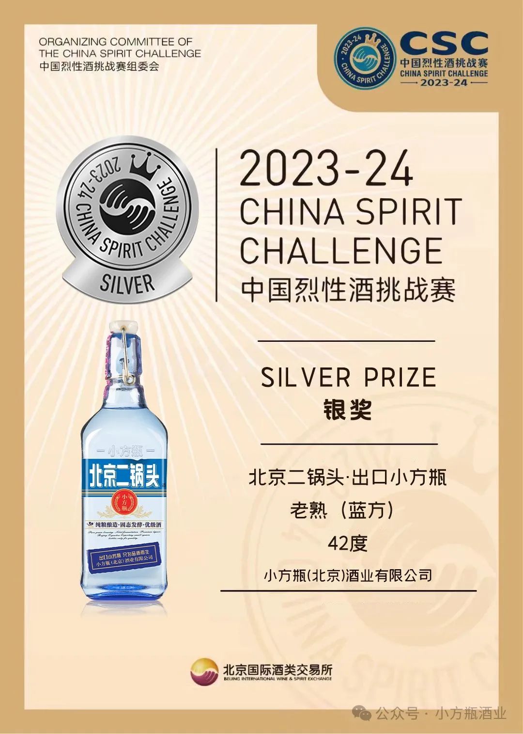 3、出口小方瓶·普方获得2023-24中国烈性酒挑战赛银奖。