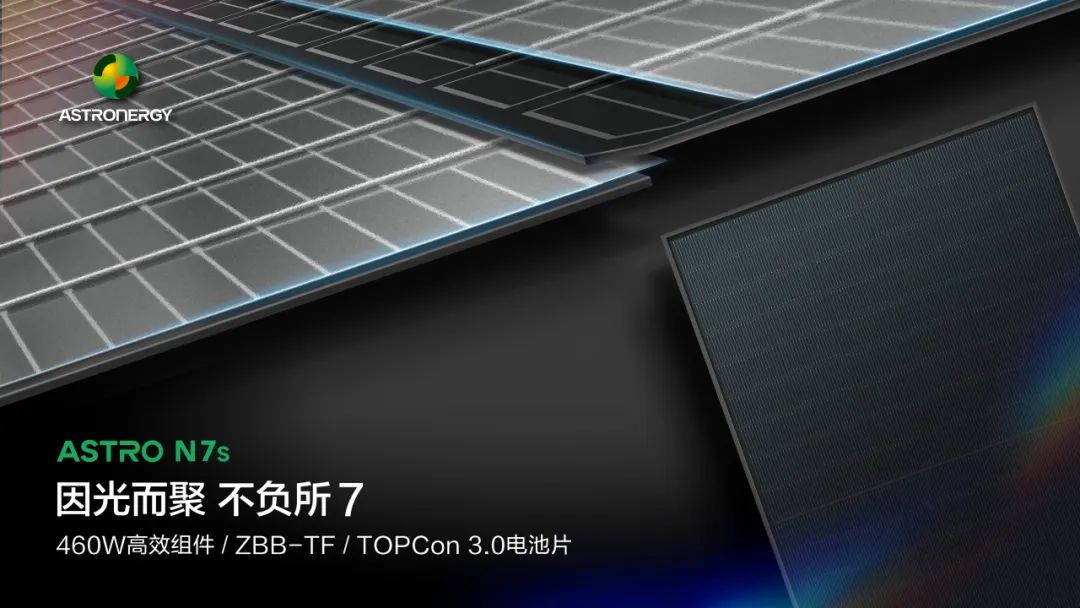 目前已规模化量产的ASTRO N7s锚定法国分布式市场需求,是TÜV莱茵认证的全球首个ZBB-TOPCon可量产级组件产品。ASTRO N7s采用正泰新能自研的TOPCon 3.0高效电池,运用矩形硅片,创新性叠加ZBB-TF技术,54版型组件功率高达460W+,效率高达23%。ZBB即低应力无主栅技术,电池片表面没有主栅线,仅保留细栅,内部载流子收集能力得到提高,美观度大大提升。同时,ASTRO N7s采用TF(Tiling Film)工艺,将互联温度降至150℃以下,且互联过程中无助焊剂,无有害气体排放,实现更为清洁低碳的生产。