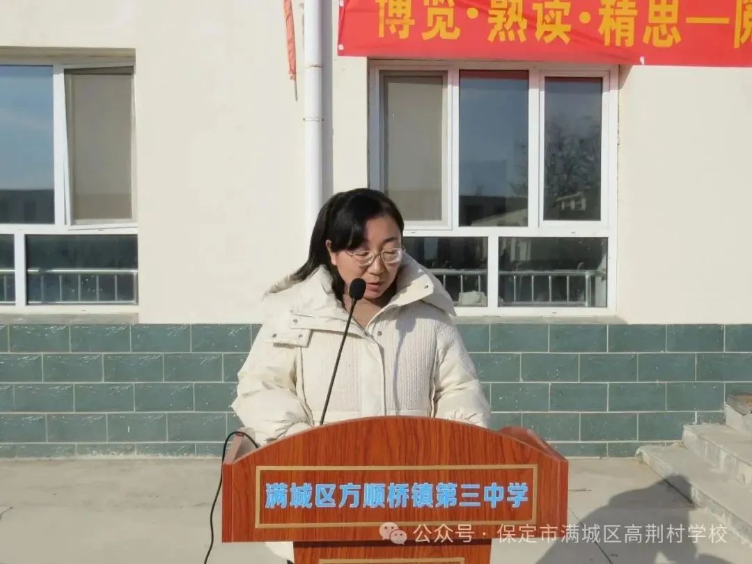 优秀教师代表刘俭以《爱读书,博学之》为题,引领学生读好素养之书:多读历史经典,做到前事不忘后事之师;多赏诗词歌赋,做到腹有诗书气自华;多习文化渊源,不断提升自身的道德情操和文化修养。立足地方特色文化资源,讲述历史文化名人故事,激励学生见贤思齐,将自我价值与国家发展、民族命运紧密联系起来。