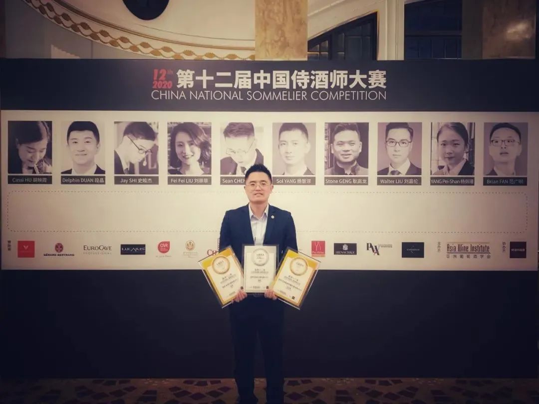 西鸽酒庄庄主张言志(左)领取TOP10荣誉证书