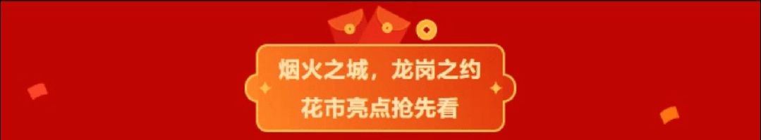 龙岗最大室内迎春花市·年货大集的活动现场设置了广东本地特产、便民百货、蔬菜水果、南北干货、糖果副食、春联年画、花鸟鱼虫、奇石玉器、古玩字画、儿童乐园、饕餮美食、家居展销等数千种摊位,除此之外还准备了丰富多样的年味活动,时空花镜奇妙夜、艺术走秀,花车巡游、非遗赋彩。