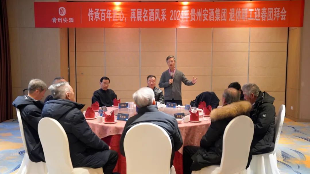 团拜会上,徐振兴与安酒退休干部金慧元、周续刚、吕珊等职工代表亲切交谈,详细询问大家的身体健康状况和业余爱好等等。徐振兴还与大家一起重温安酒发展历史。他回忆到, 1988年,贵州安酒集团成为中国第一家白酒集团公司,不仅在国内市场广受欢迎,还远销至全球60多个国家和地区。他说“每一位老前辈都是安酒发展过程中的宝贵财富,你们见证了安酒的每一步发展,是安酒蓬勃发展的奠基石”。