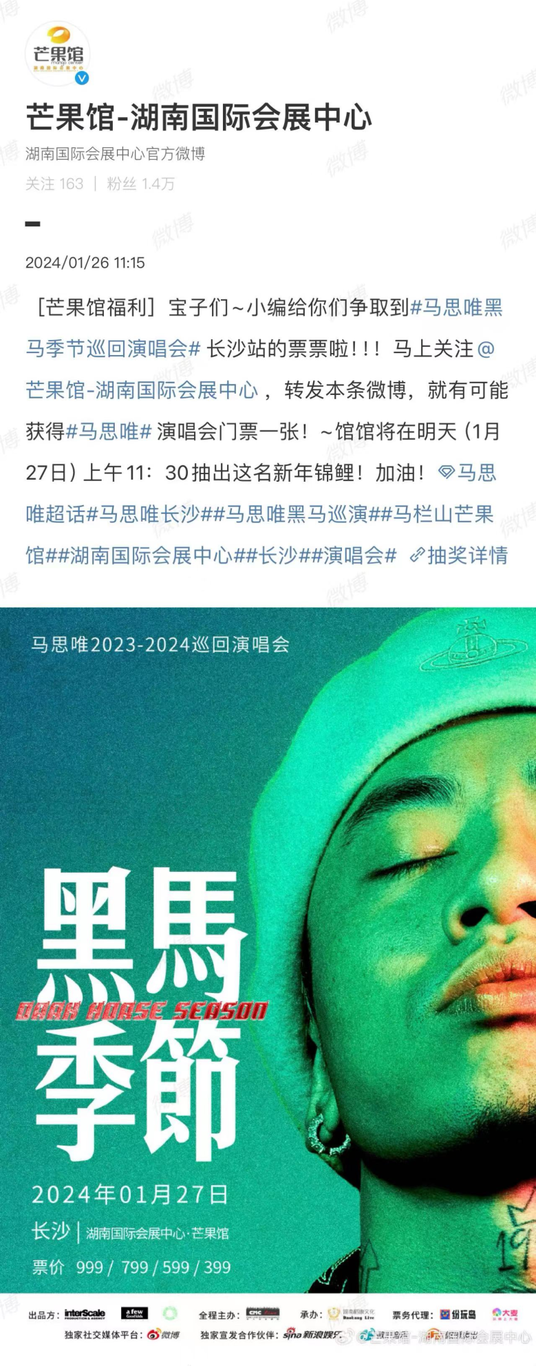 由于演出当天人流量大、车流量多,为确保马思唯长沙站演唱会期间道路交通安全、畅通和有序,主办方呼吁歌迷低碳绿色出行,倡议歌迷朋友们搭乘公共交通前往观演,以免因塞车、找不到停车位而耽误观演。