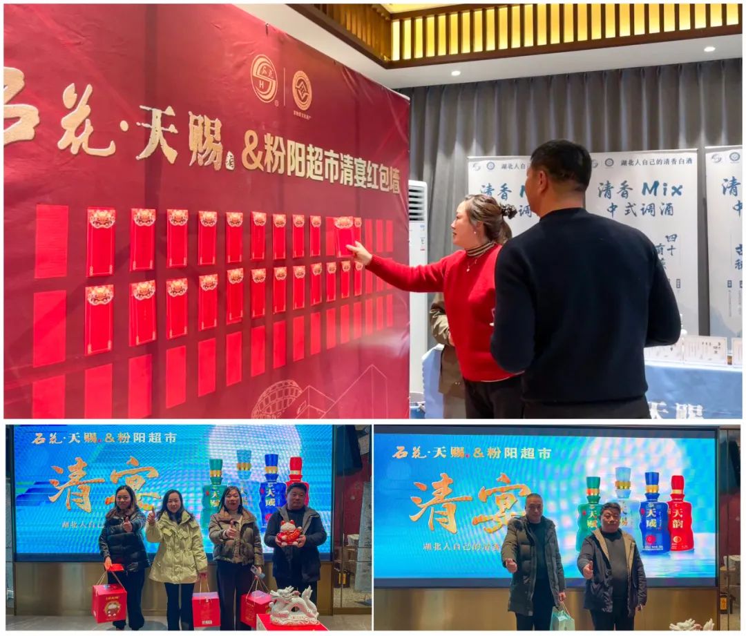 鉴赏会上,石花酒业准备了订货红包墙,为嘉宾们送上了石花天赐酒、石花五心酿酒、石花招财猫酒等精美奖品。