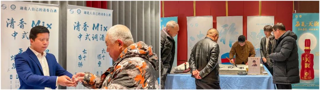 会前,石花酒业特别为来宾们准备了石花天系列酒品鉴、自调酒和书法体验环节,让消费者亲身体会石花酒的品质魅力,用石花天系列酒细腻的品质唤醒消费者对于清香白酒的味觉体验。