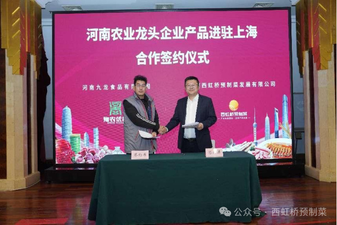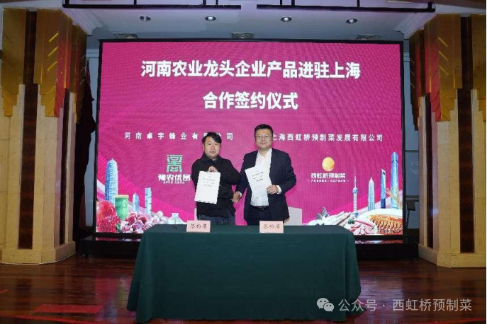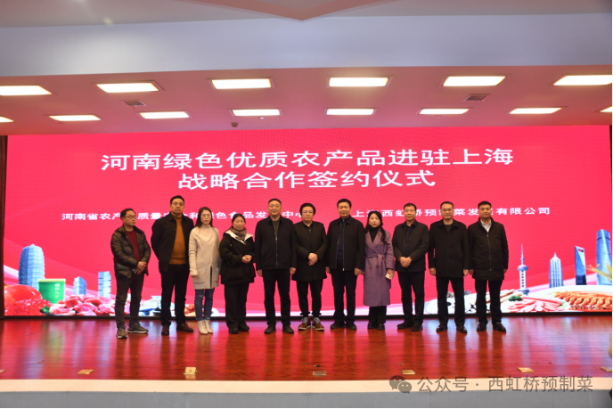 活动现场,由河南省农产品质量安全和绿色食品发展中心与上海西虹桥预制菜发展有限公司签订了《豫农优品天下行战略合作协议》。