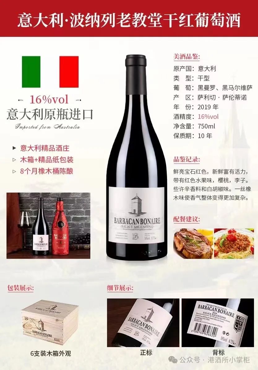 波纳列老教堂干红葡萄酒是意大利的一款明星酒款,属于当地的名酒。主要以本土独有的当地特色葡萄品种黑曼罗而名扬全球的顶级DOC。干燥炎热的气候造就了当地葡萄品种黑曼罗的糖度极高,再加上风干技术酿造的黑曼罗更为珍贵,才能酿出纯天然的16度的非加强性葡萄酒,香气持久、浓郁扑鼻。