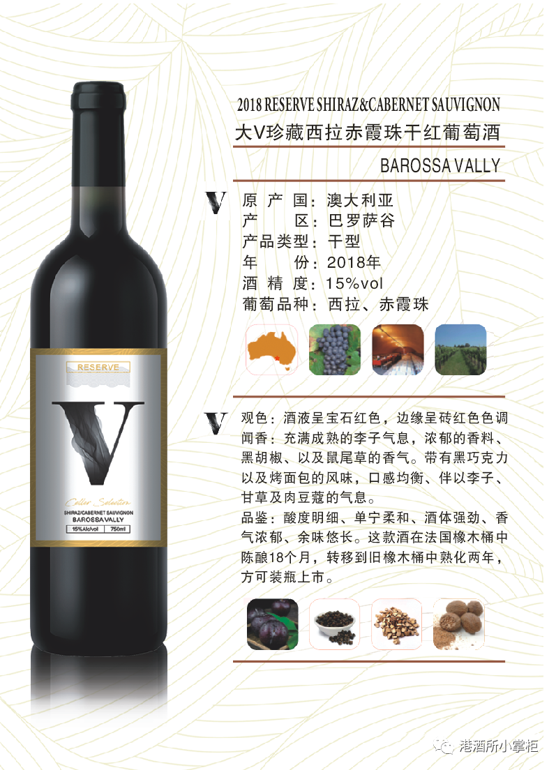 酒庄位于澳洲南部,奔富酒庄的东邻,酒庄采用20年以上老藤果实为原料,果实饱满且糖度高,通过风干工艺方可酿出酒精度达15度的干红顶线度数酒浆,全新橡木桶陈酿12个月,使得酒体醇厚,单宁强劲。酒庄拥有百年历史,葡萄品种采用澳洲经典酿酒比例工艺,西拉和赤霞珠混酿,与奔富葛兰许葡萄品种配比比例相同酿制,被誉为南澳的小葛兰许。