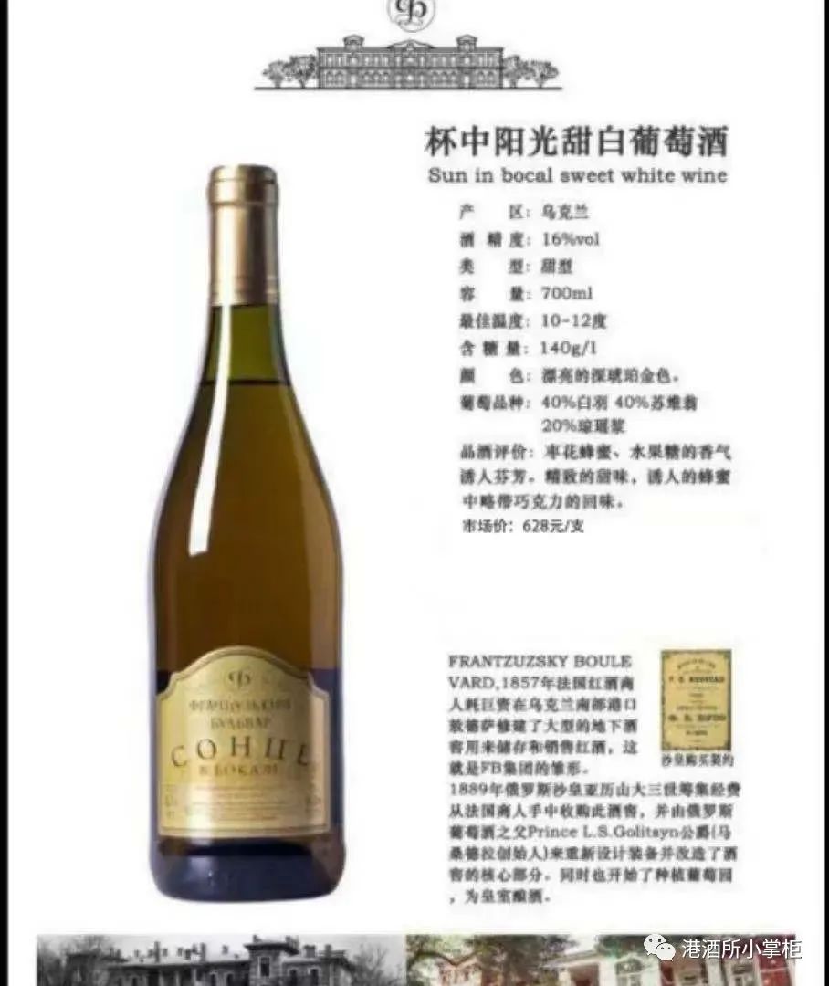 该酒是甜酒中稀少的老年份高度酒,有40%白羽、40%苏维翁、20%琼瑶浆精心酿制而成,酒香浓郁,醇厚,甜而清爽。温度在8至12度下饮用,口感更佳。