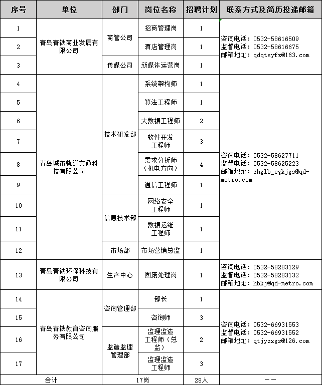 青岛地铁1987年开始筹建,2010年首条线路开工建设,2012年底组建地铁集团,与市地铁办合署办公,承担全市轨道交通建设、运营、投融资、开发等职能。青岛地铁深入践行“为城市建地铁、为人民建地铁”的初心使命,全力匹配城市发展战略,聚焦城市更新建设三年攻坚行动,锚定“建设世界一流地铁、打造一流城市投资建设运营商”发展目标,三位一体系统推进“双一流”地铁建设,成为近十年全国发展最快的地铁之一。目前,集团职工总数1.5万人,资产总额3000亿元。为满足集团各单位业务发展需要,现启动2024年第一批次社会招聘,具体情况如下: