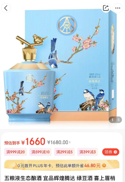不光是高端五粮液集团的出身,馥郁浓香的强劲酒体好喝不上头。无论孝敬长辈还是答谢互联网公司的合作伙伴也不会显得老气,格外有面子。喜雀在古代便是一种十分喜庆的飞禽,寓意道喜旺财、喜事到。收到这样的礼物,无论哪个客人自然是高高兴兴,喜上眉梢啦。最后是最最关键的,每一坛酒上都有防伪验证码,一酒一码。最后,五粮液·辉煌腾达某东1660元。今天就放出福利!仅本号粉丝享有!前300坛,1800mL新年礼坛装,到手只要299元!这几天我身边有听到消息的同事朋友都来抢了,大家抓紧时间!
