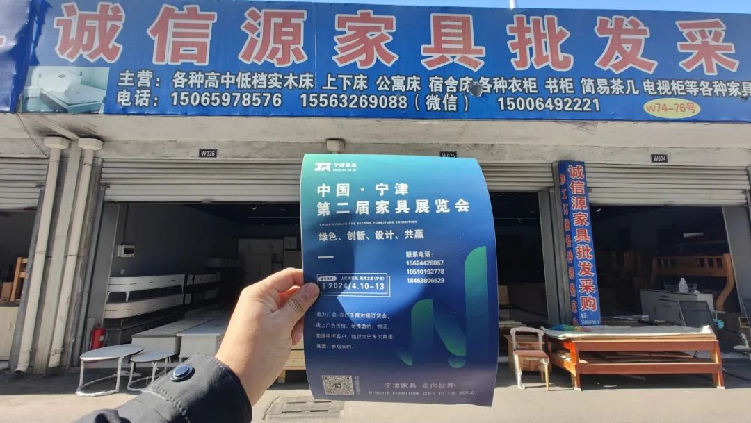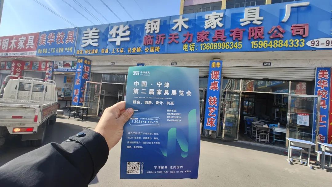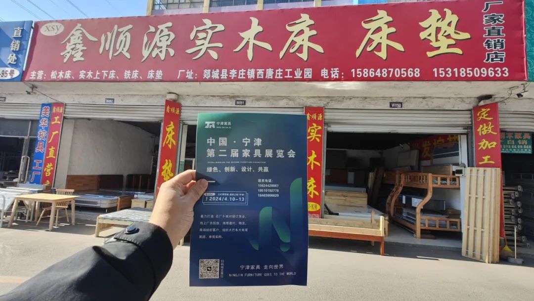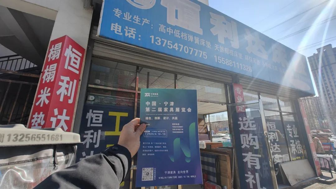 1月20日,展会地推第一轮全面启动!【宁津县家具协会】工作人员赴山东临沂,淄博,周村,聊城,河北武邑,衡水,等地邀约客户并宣传宁津第二届家具展览会。覆盖中国家具主要生产基地、大潜力消费市场。通过精准的线下推广,展会将广邀全国经销商相约四月、相约宁津,并且邀请物流组织专业买家包车到宁津观展采购。