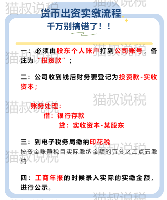 注意!货币出资实缴四步